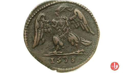 Aquila spiegata, con la testa rivolta a destra e le ali abbassate. In esergo 1578