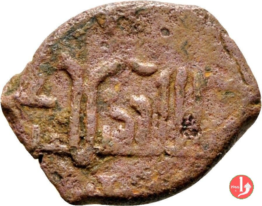 Follaro (S. Nicola) Dritto: Contorno perlinato. Nel campo busto di fronte di San Nicola nimbato con ai lati ![]() NI e KAOA.Verso: Contorno perlinato. Nel giro legenda cufica. Nel campo, all'interno di circolo lineare, stella a sei raggi. | |
