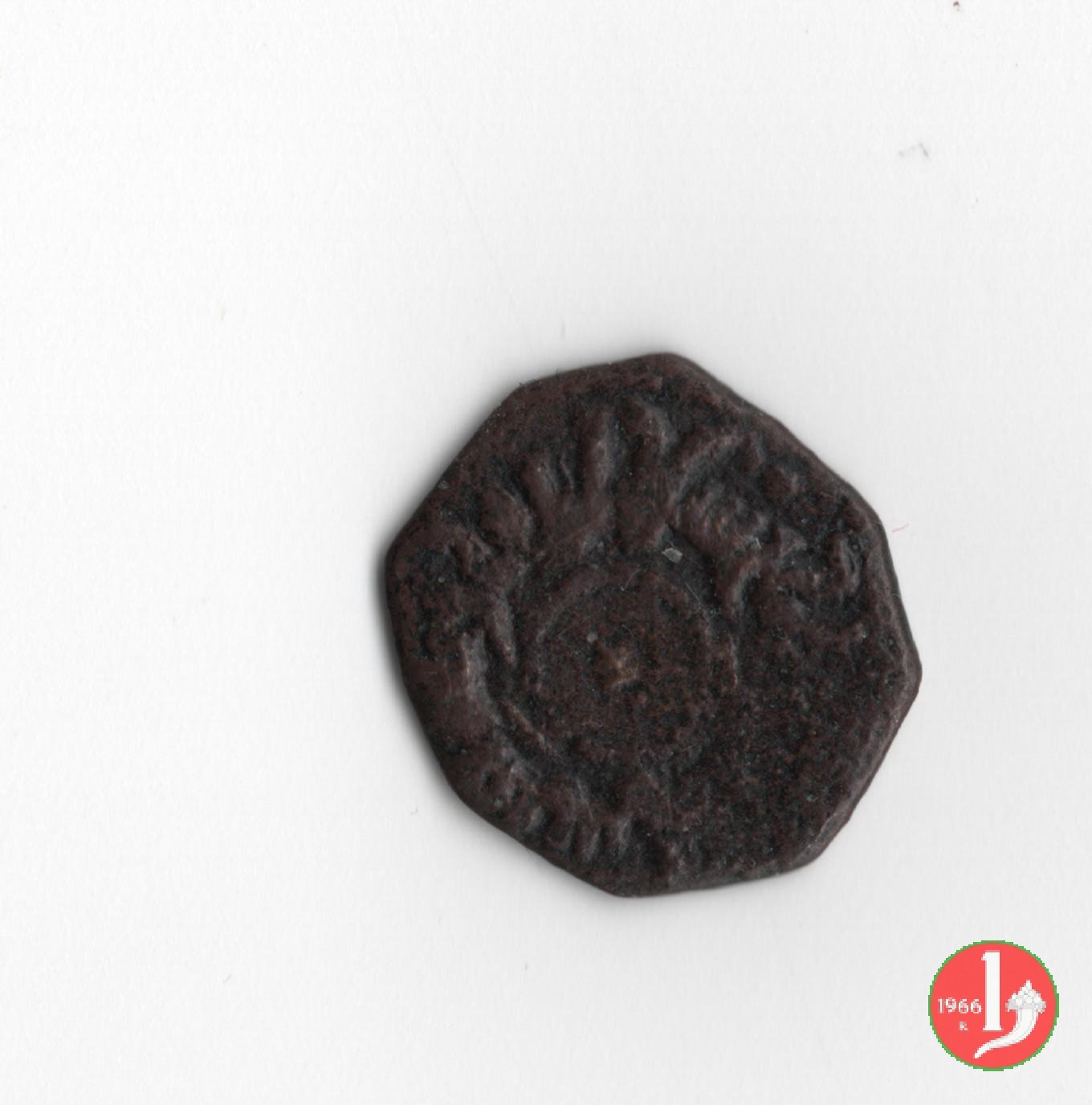 Mezzo Follaro Dritto: Contorno perlinato. Nel campo Madonna in preghiera con le braccia aperte, con ai lati le lettere MP e ![]() Y Verso: Contorno perlinato. Legenda in caratteri cufici disposta a croce. In ogni quadrante quattro • | |