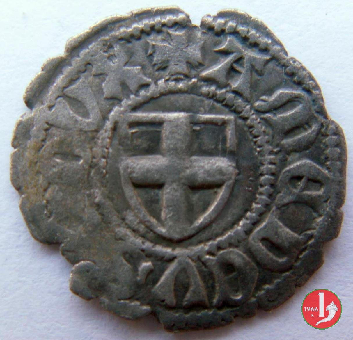Obolo di viennese III tipo Dritto: Scudo sabaudo, intorno: croce AMEDEUS segno DUX Verso: Croce patente, intorno: croce SABAUDIE | |