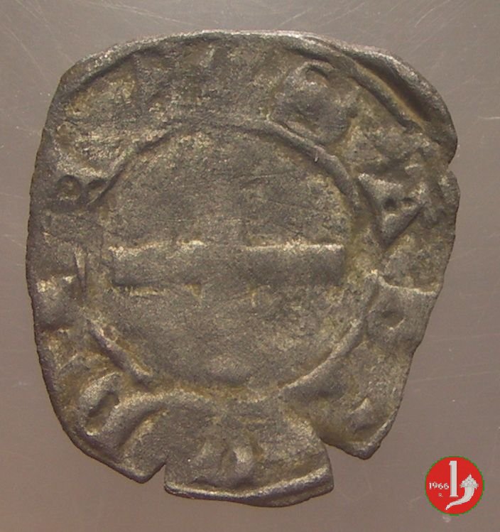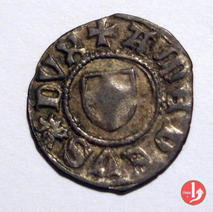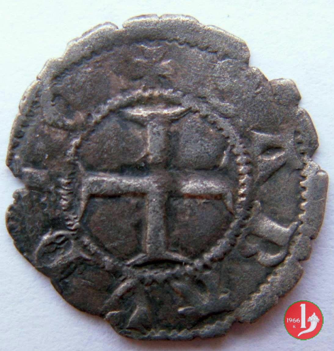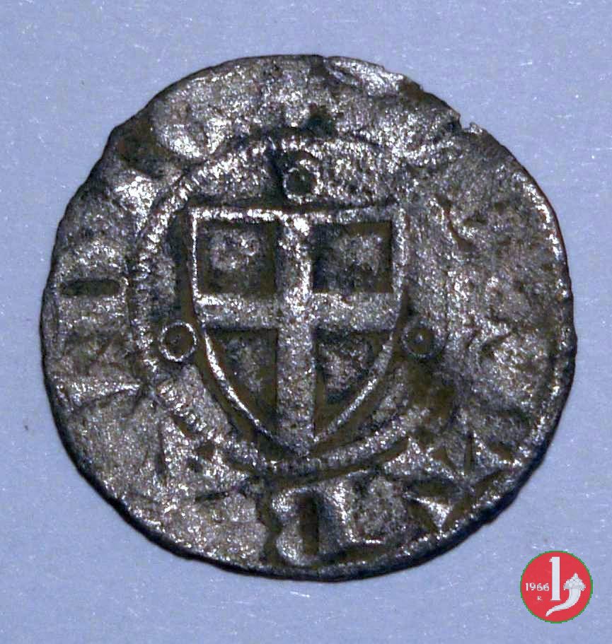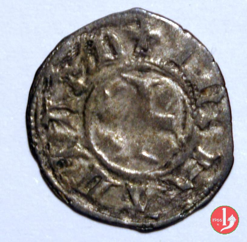 Obolo piccolo bianco Dritto: Grand A gotica, intorno: croce segno IMO segno COMES Verso: Croce che taglia in quattro la legenda con un bisante nel II e nel III cantone, intorno segno SA BA UD IE | |