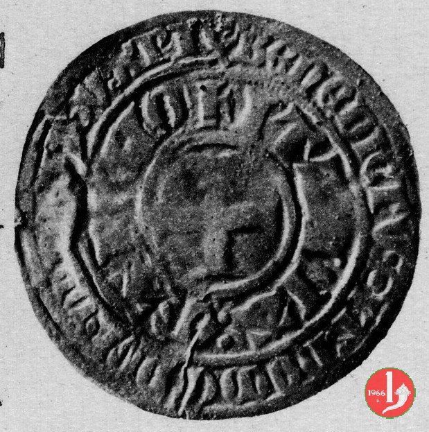 Forte I tipo Dritto: Scudetto sabaudo con sopra una rotella di sperone a cinque punte, intorno: croce ED'UARD' segno COM Verso: Una A gotica attorniata da quattro rotelle di sperone a cinque punte, intorno: croce D'SABAUDI | |