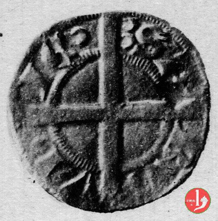 Denaro secusino Dritto: Croce patente, intorno: croce Ph • COMES • Verso: Tre bisanti in palo, intorno: croce • SECUSIA | |