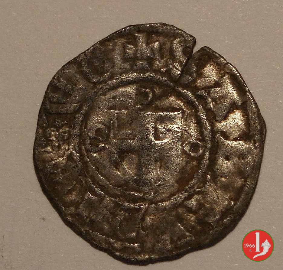 Denaro forte IV tipo Dritto: Stella a sei punte con due bisanti ad ore 5 ed ore 11, intorno: croce AM' segno COMES Verso: Croce patente con un bisante al II cantone, intorno: croce segno SABAVDIE segno | |