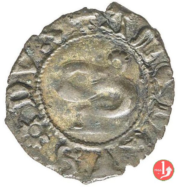 Denaro viennese II tipo Dritto: Grande A gotica, intorno: croce MED segno COMES Verso: Scudetto sabaudo, intorno: croce SABAUDIE | |