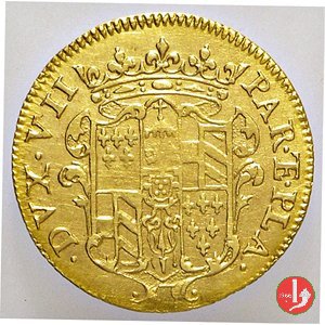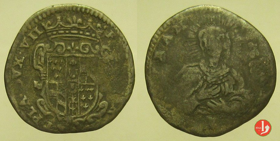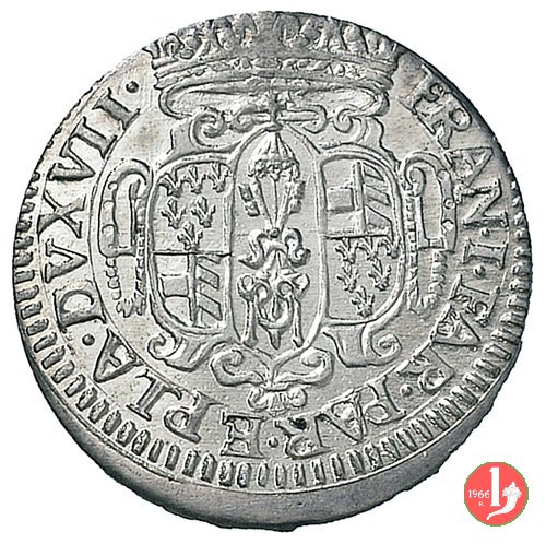 Dritto: Stemma del Duca sormontato da corona, intorno FRAN • FAR • PAR • ET • PLA • DVX • VII •.
