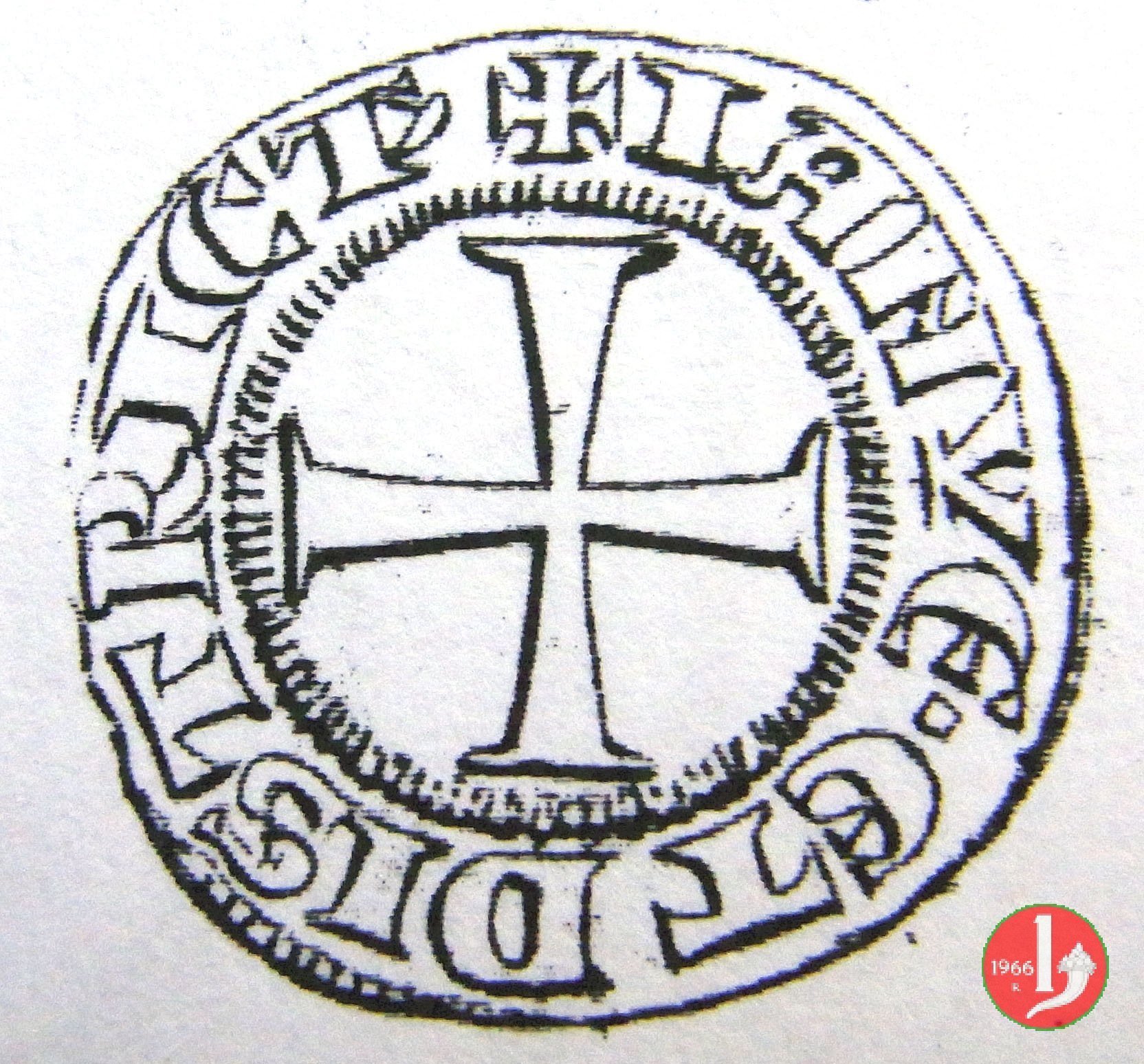 Croce inscritta in un cerchio (forse) perlinato.