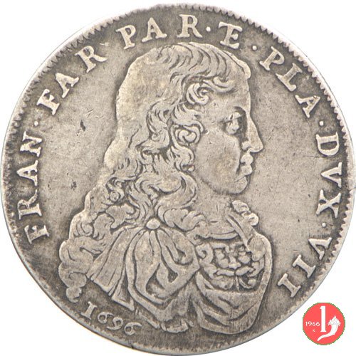 Dritto: Busto corazzato a destra, intorno FRAN • FAR • PAR • ET • PLA • DVX • VII •. Sotto il busto indicazione del millesimo (1696).