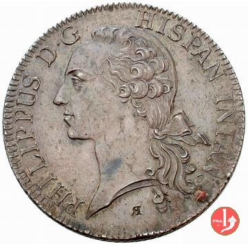Dritto: Stemma familiare dei Borbone di Spagna sovrastato dalla corona Ducale, intorno: FERD.(inandus) I. H.(ispaniarum) I.(nfans) D.(ei) G.(ratia) PAR.(mae) PLA.(centiae et) VA.(stallae) DVX. Dopo il 1792 ai lati dello stemma appare D • G •, lo stemma diventa piú stretto e alto.