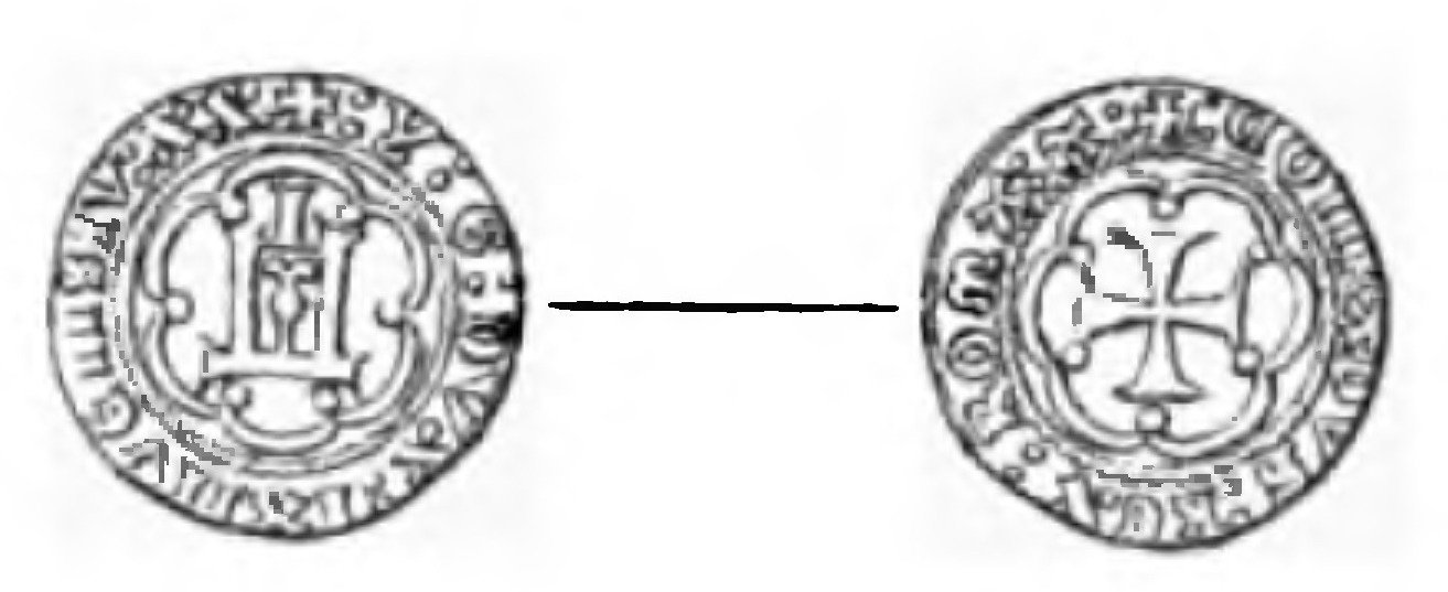Soldo Dritto: ✠ IANVA Castello in sei archi co palline agli angoli, in cerchio perlinato. Croce patente in 6 archi con palline agli angoli, in cerchio perlinato. | |