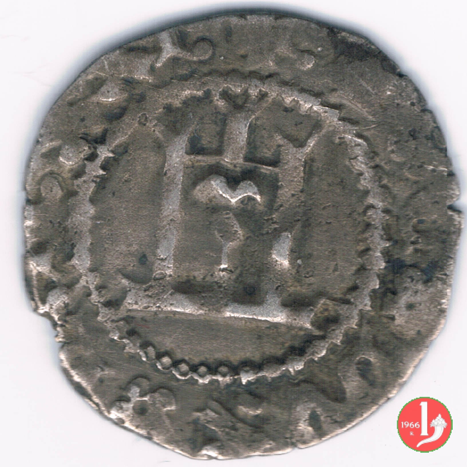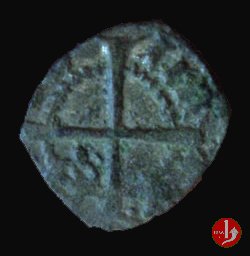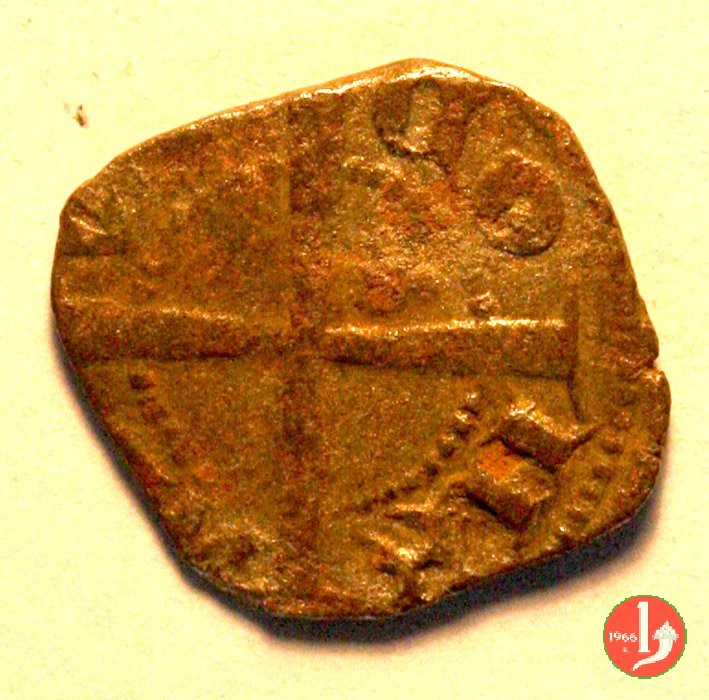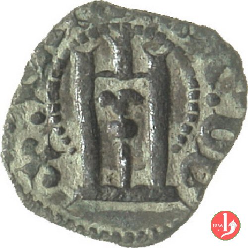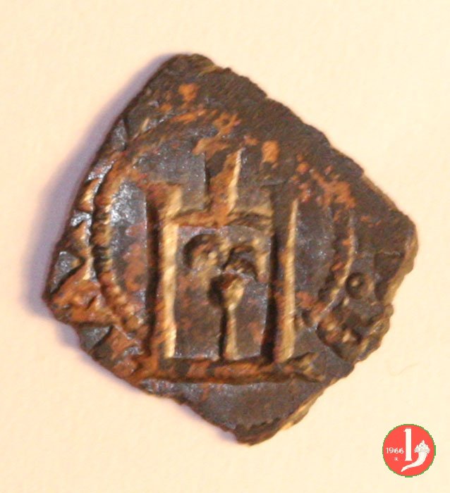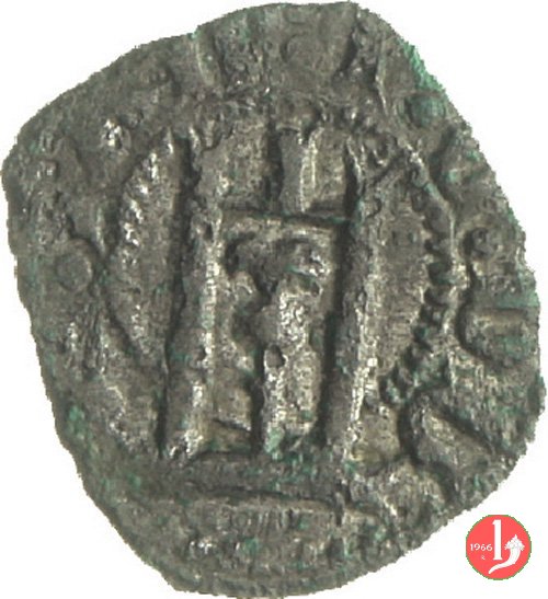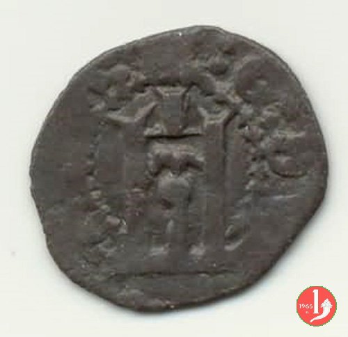 Soldino Dritto: ✠ Castello in archetti con palline e cerchio perlinato. Croce patente in 6 archetti con palline e cerchio perlinato. | |
