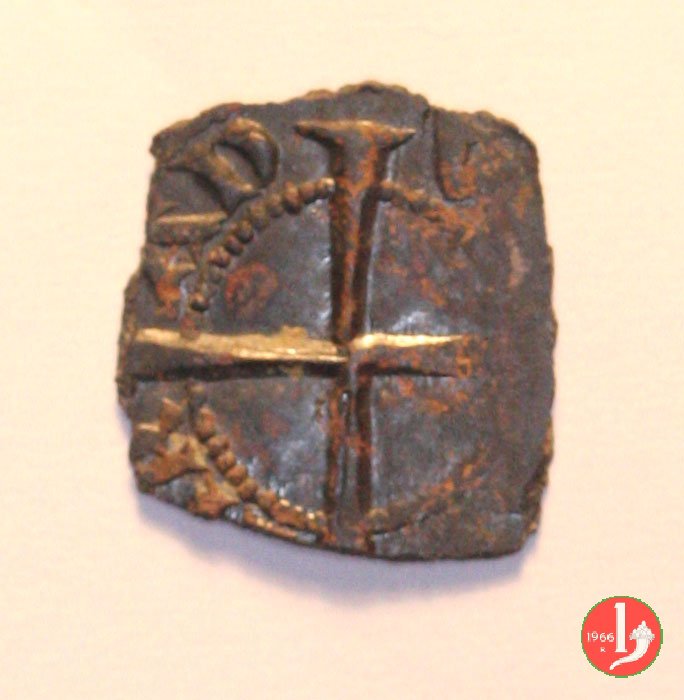 Ducato Dritto: ✠ P Castello in 8 archetti con crocette e anellini agli angoli in cerchio perlinato. Croce patente in 8 archetti con crocette e anellini agli angoli in cerchio perlinato. | |
