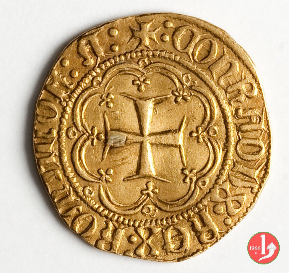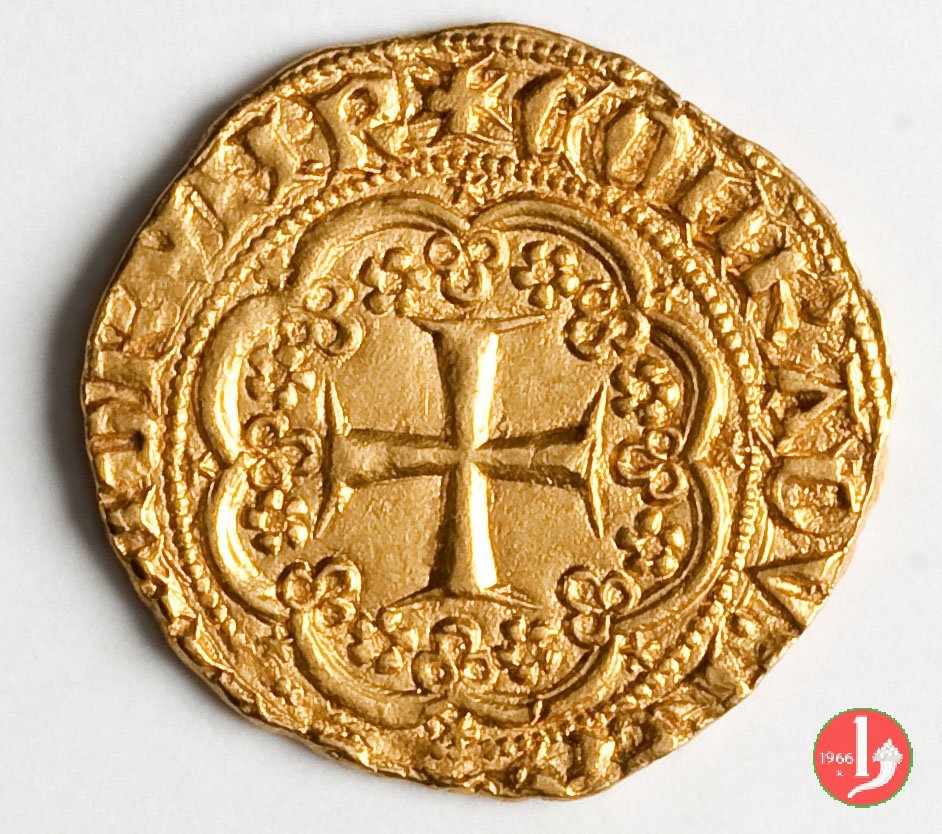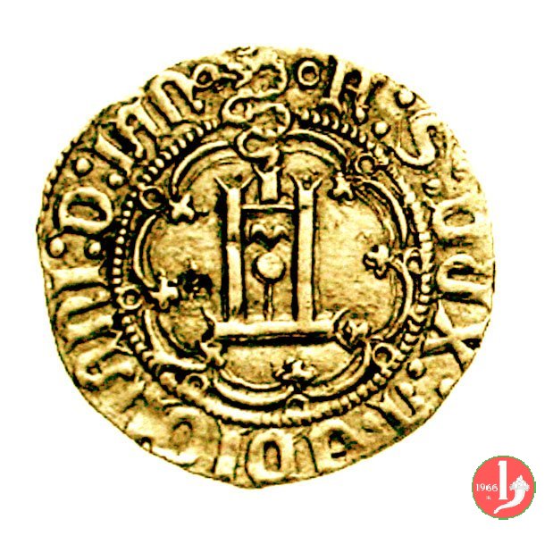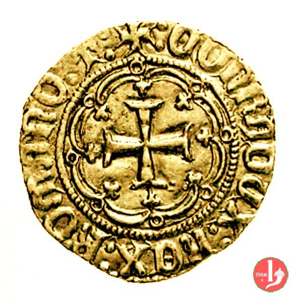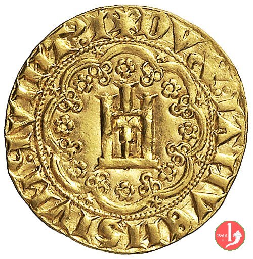 Genovino di I tipo Dritto: ✠ DVX •IANVE •QVA •DEVS PTEGAT • (sigla o simbolo) Castello in 8 archi doppi con ornati in cerchio perlinato. Croce in 8 archi doppi con ornati. | |