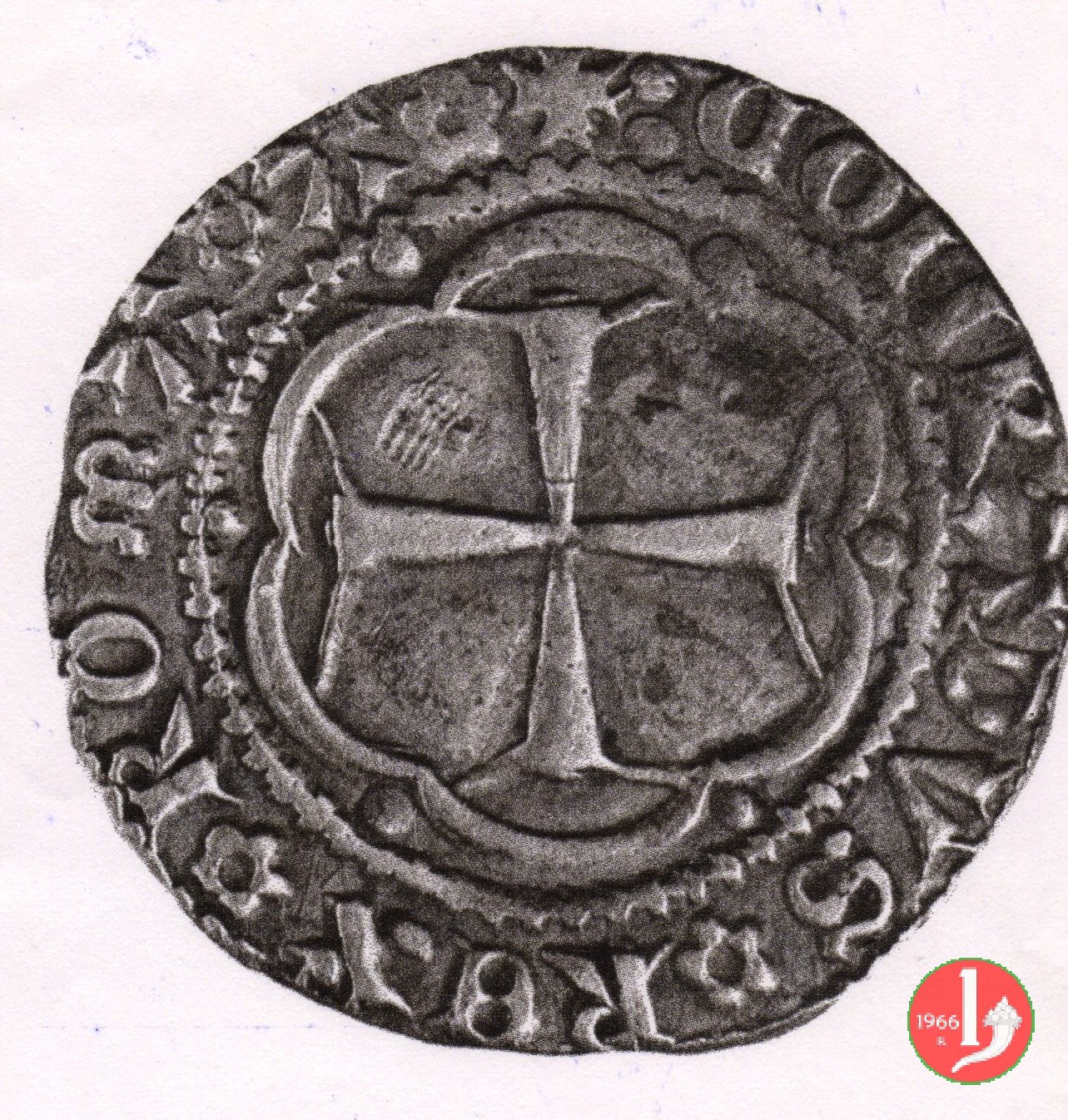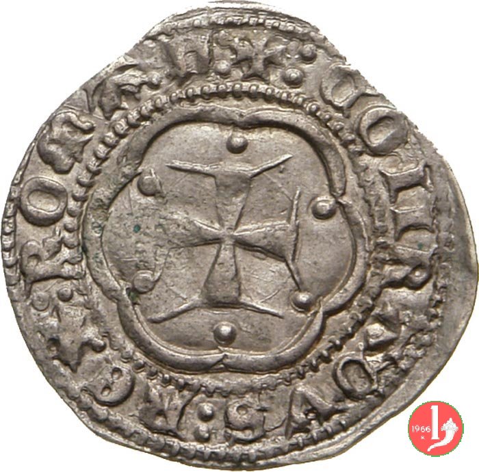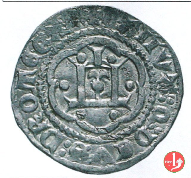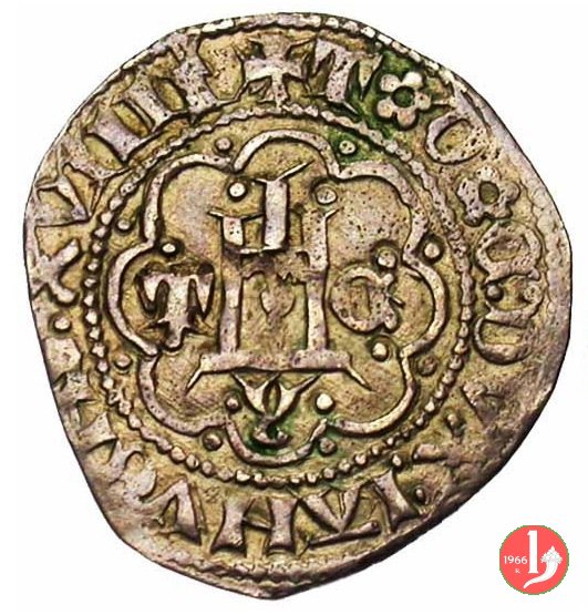 Grosso Dritto: ✠ DVX • IANVENSIVM • SEPTIM' Castello in 8 archetti ornati con punti agli angoli in cerchio perlinato, lettera "I" sotto il castello. Croce patente in 8 archetti ornati con punti agli angoli in cerchio perlinato. | |