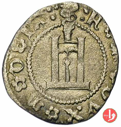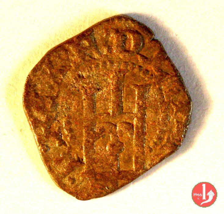 Soldino Dritto: ✠ Castello in 6 archetti con perline agli angoli in cerchio perlinato. Croce patente in 6 archetti con perline agli angoli in cerchio perlinato. | |
