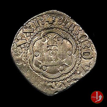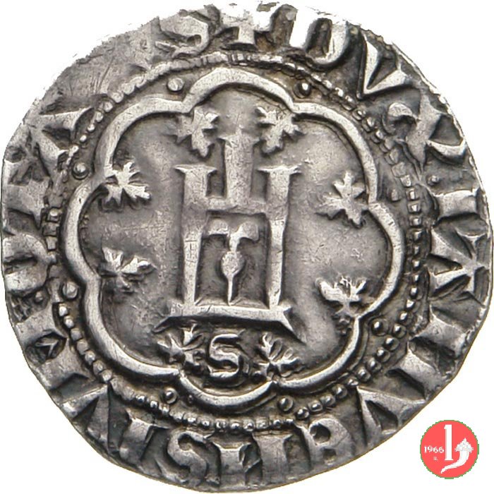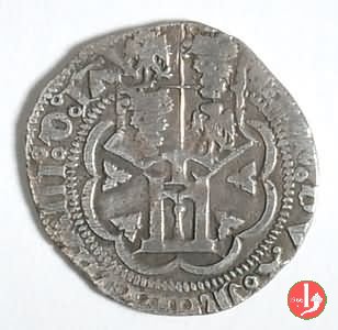 Grosso Dritto: ✠ DVX Castello in 8 archetti ornati con punti agli angoli in cerchio perlinato e lettera sotto il castello. Croce patente in 8 archetti ornati con punti agli angoli in cerchio perlinato. | |