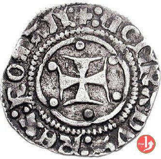 Ducato (Doge XX) Dritto: ✠ ![]() ![]() Castello in 8 archetti con palline agli angoli e trifogli e fiori all'interno, in cerchio perlinato. Croce patente in 8 archetti con palline agli angoli e trifogli e fiori all'interno, in cerchio perlinato. | |