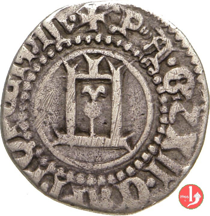 Grosso Dritto: ✠ P Castello in cerchio perlinato. Croce patente in cerchio perlinato. | |