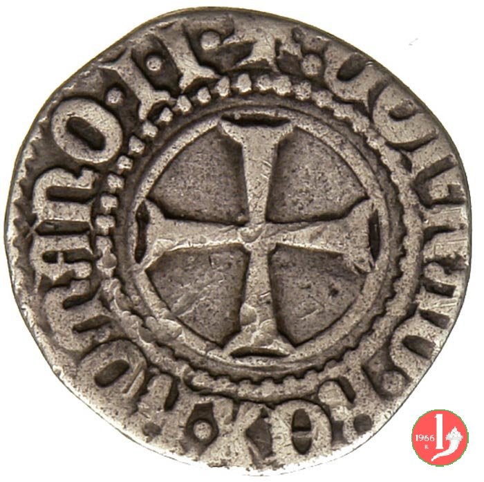 Grosso Dritto: ✠ GVBERNATOR ![]() IANVENSIVM ![]() ![]() Castello in 8 archetti ornati con punti agli angoli in cerchio perlinato, lettera sotto il castello. Croce patente in 8 archetti ornati con punti agli angoli in cerchio perlinato. | |