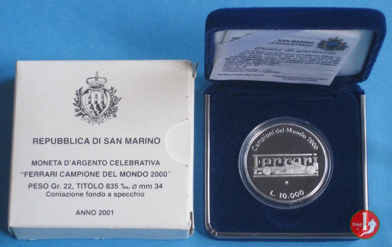 Emissioni Commemorative in Argento -> 10000 Lire 2001 "Ferrari Campione Del Mondo"