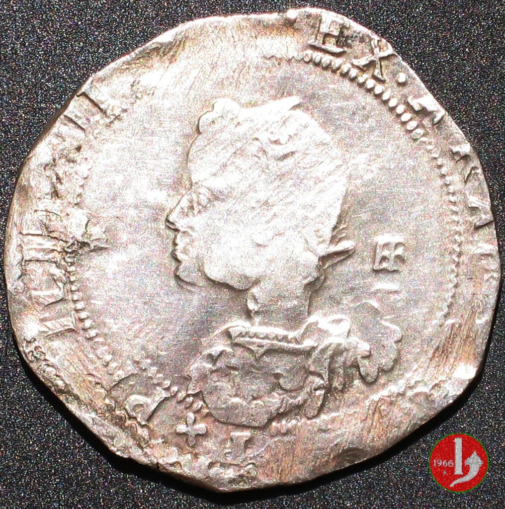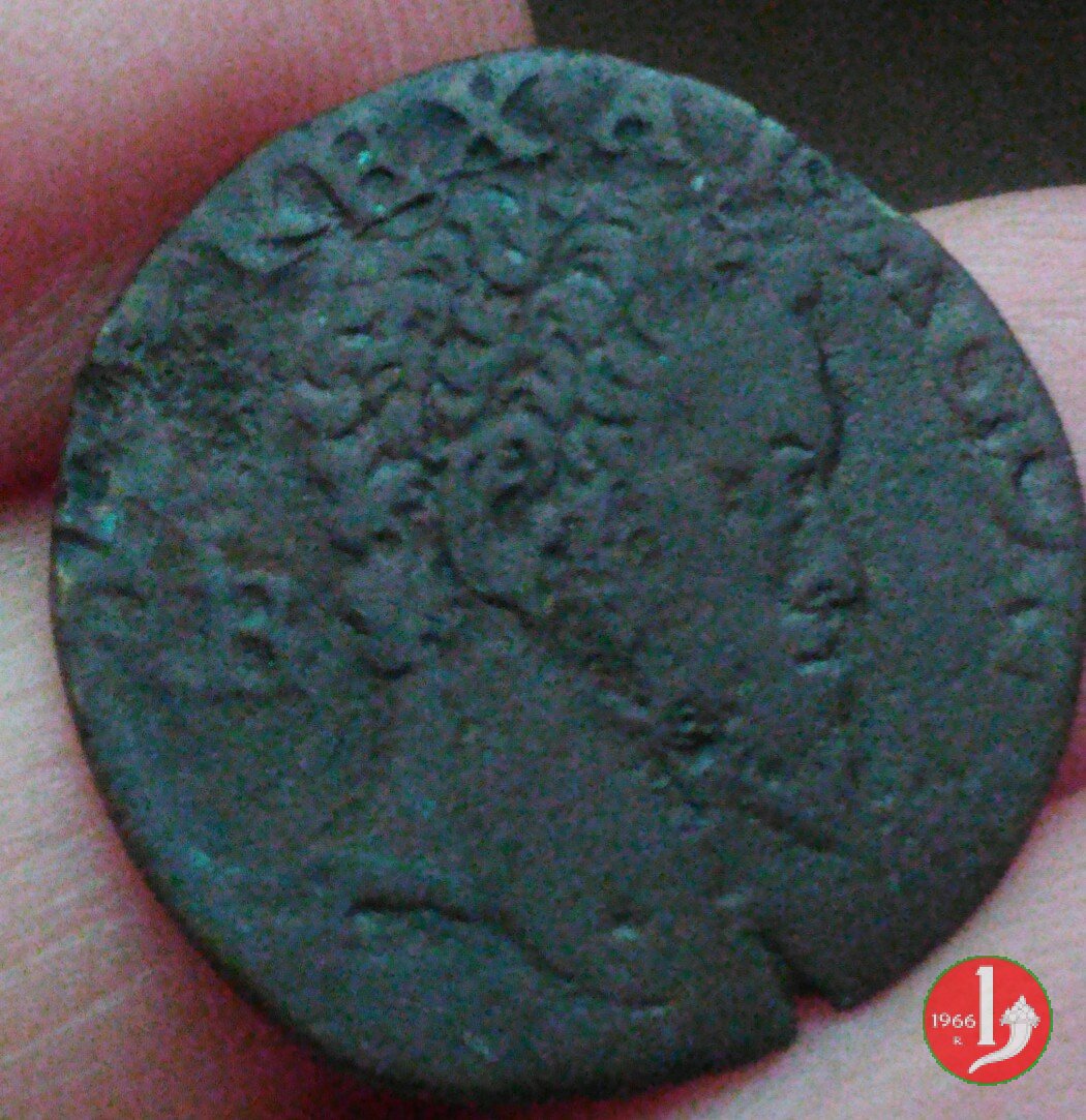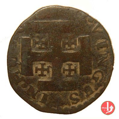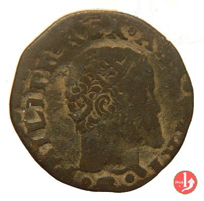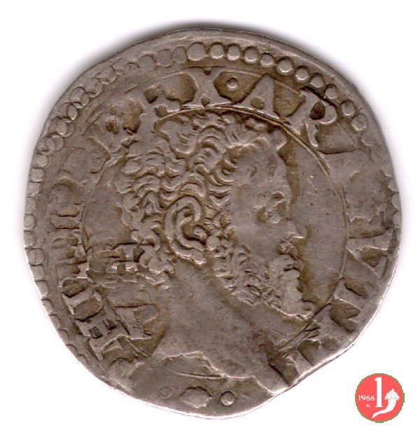 Due scudi con la Pace andante a sx Dritto: CAROLVS • V • ROMA • IMP •, Busto del re con corona radiata volto a dx, dietro sigla. Verso: • MAGNA • OPERA • DOMI •, La pace volta a sx , in piedi, avente nella mano sx una cornucopia e nella dx una torcia che brucia una pila di libri ed armi. | |