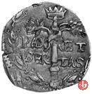 Due scudi con corona radiata e Pallade Dritto: CAROLVS • V • ROM • IMP, Busto con corona radiata volto a dx, dietro sigla. Verso: VICTORIA CAESARIS, Pallade seduta a dx, vicino a delle armi, in mano un'asta. | |