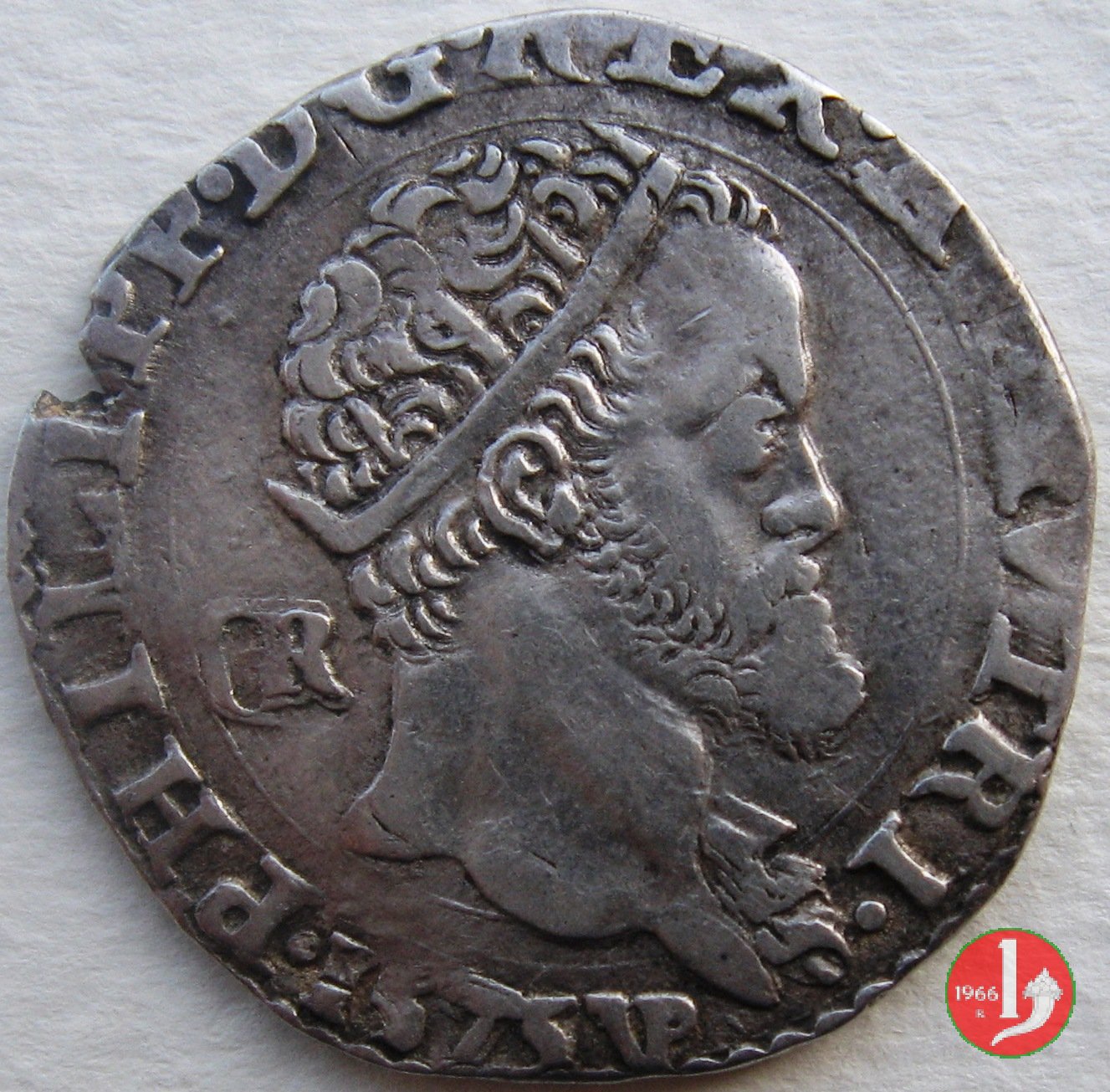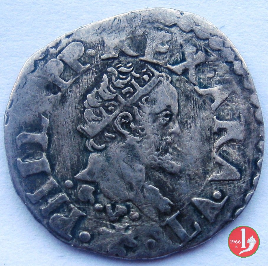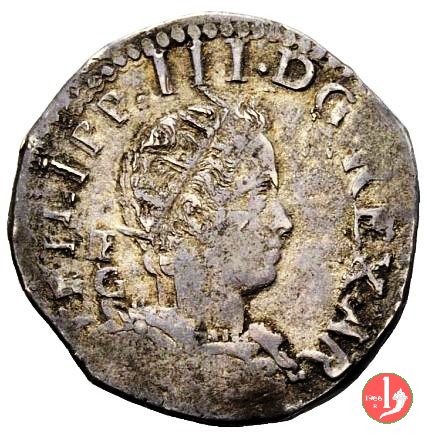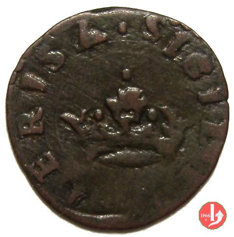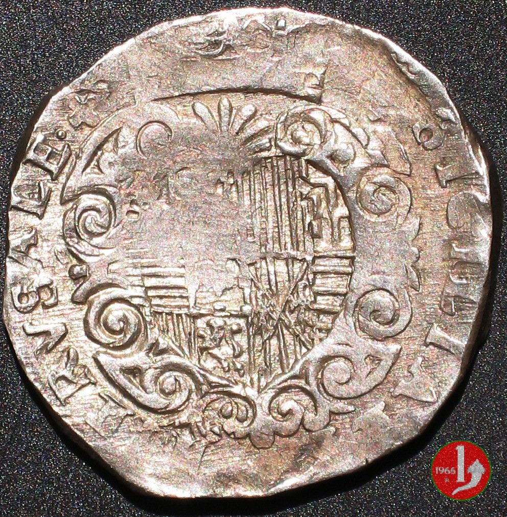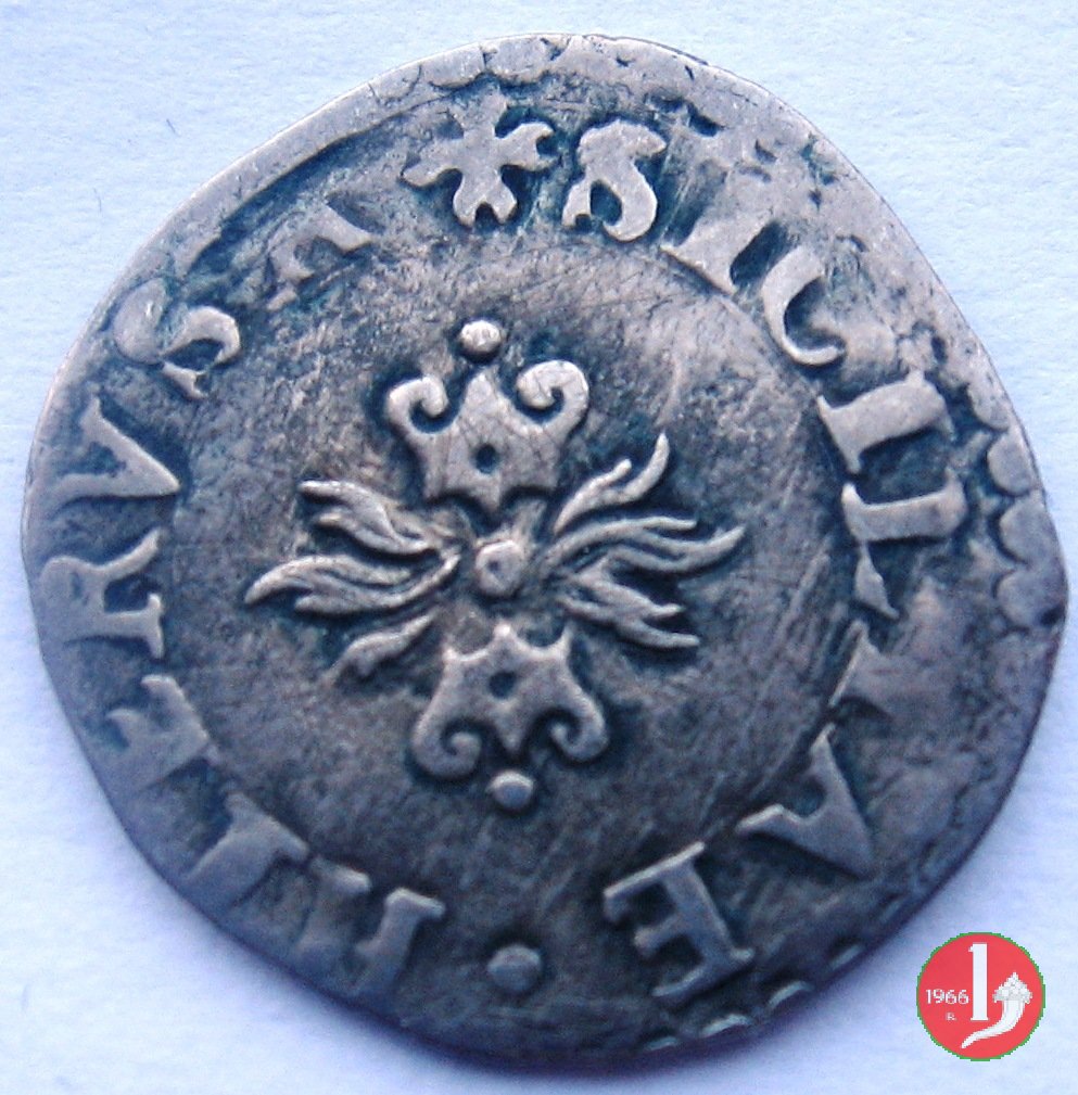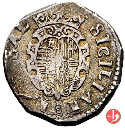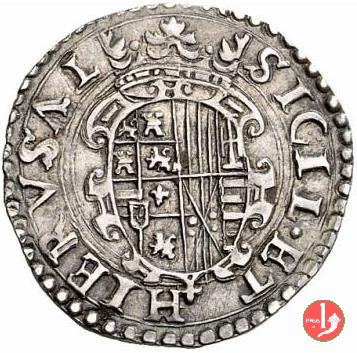 Tarí con il busto del Re a testa nuda Dritto: PHILIPP • REX • ARAGON • VTRI • SI, Busto a testa nuda volto a dx. Sigle dietro la testa. Verso: SICIL • ET • HIERVSAL, Stemma ellittico coronato, inquartato in cartocci. | |