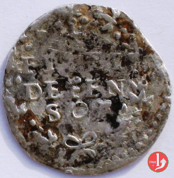 Carlino con FIDEI Dritto: PHILIPP • III • DG • REX • ARA, Busto del Re radiato volto a dx, dietro sigle. Verso: FIDEI • / • / DEFEN • / SOR •, In ghirlanda chiusa in alto da una croce cantonata da punti. | |