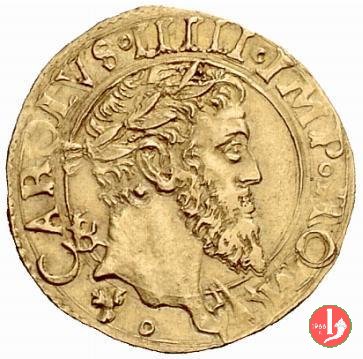 Ducato con busto adulto a dx Dritto: CAROLVS ° V ° IM ° R, Busto giovanile del re coronato con barba, dietro R. Verso: °E° R° ARAGO° VTRIVSQ ° S°, Stemma inquartato, caricato da aquila bicipite, sulla quale piccolo stemma. | |