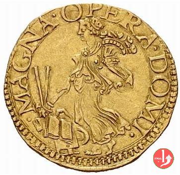 Due scudi con la Pace andante a dx Dritto: CAROLVS: V: RO: IMP:, Busto del re con corona imperiale volto a dx, dietro A. Verso: MAGNA: OPERA: DOMINI:, La pace volta a dx , in piedi, avente nella mano sx una cornucopia e nella dx una torcia che brucia una pila di armi. | |
