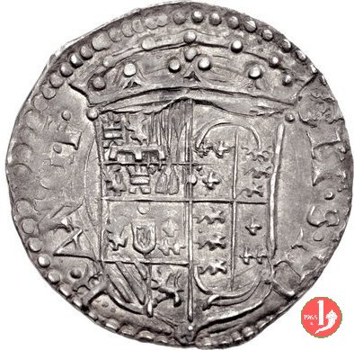 1/2 Ducato 1° tipo Dritto: PHILIPP • R • ANG • FR • NEAP • PR • HISPA, Busto coronato (o a testa nuda) volto a dx, dietro monogramma IBR, sotto simbolo. Verso: POSVIMVS • DEVM • A DIVTOREM NOST (Ponemmo Dio come nostro sostenitore), Stemma ellittico inquartato coronato in cartocci. Contorno di perline. | |