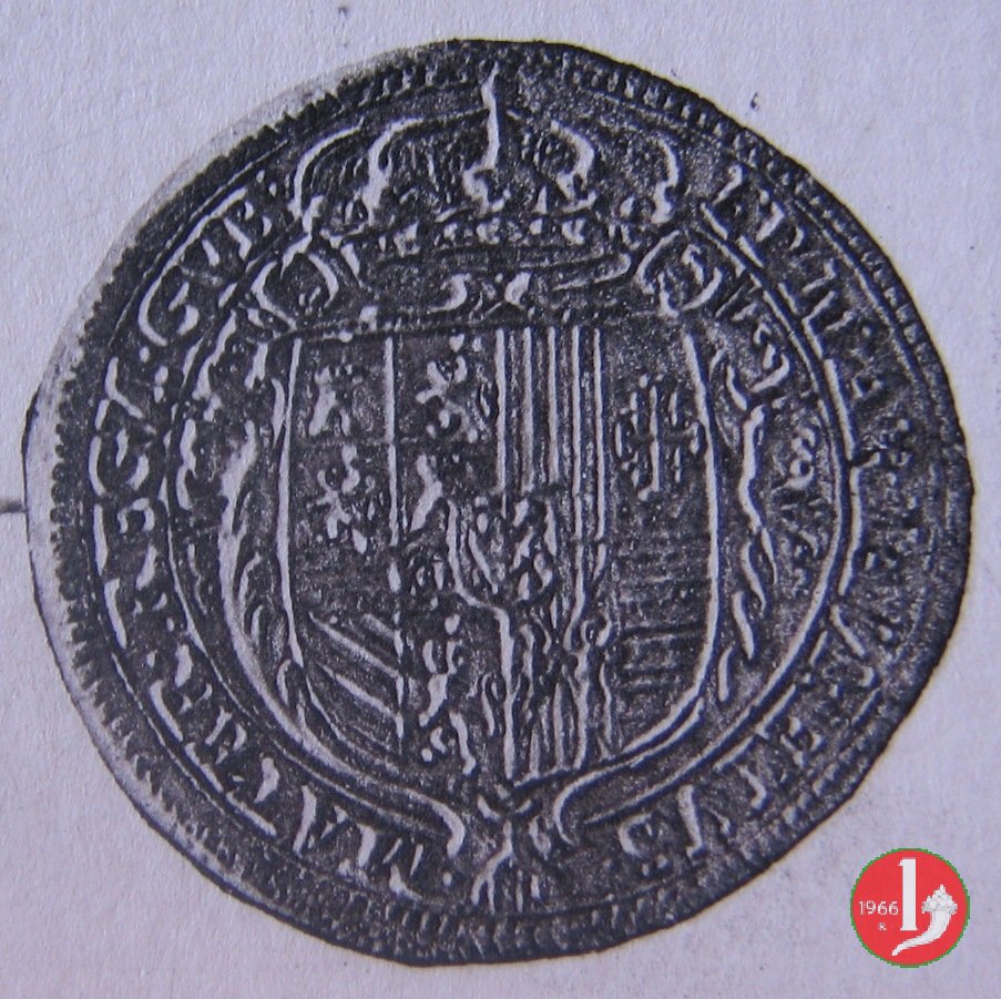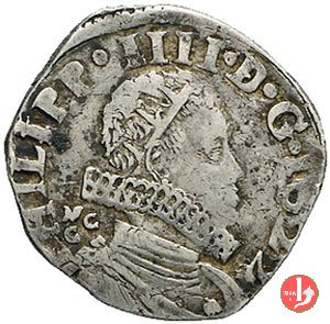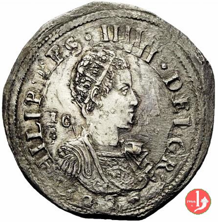 9 Cavalli Dritto: PHILIPPVS IIII D. G., Busto a testa nuda, con corazza volto a sx, dietro sigla. Verso: FIDEI • CATHOLICE • CVLTOR •, Castello con tre torri da cui sorge un leone con spada, ai lati la data divisa in due parti. | |