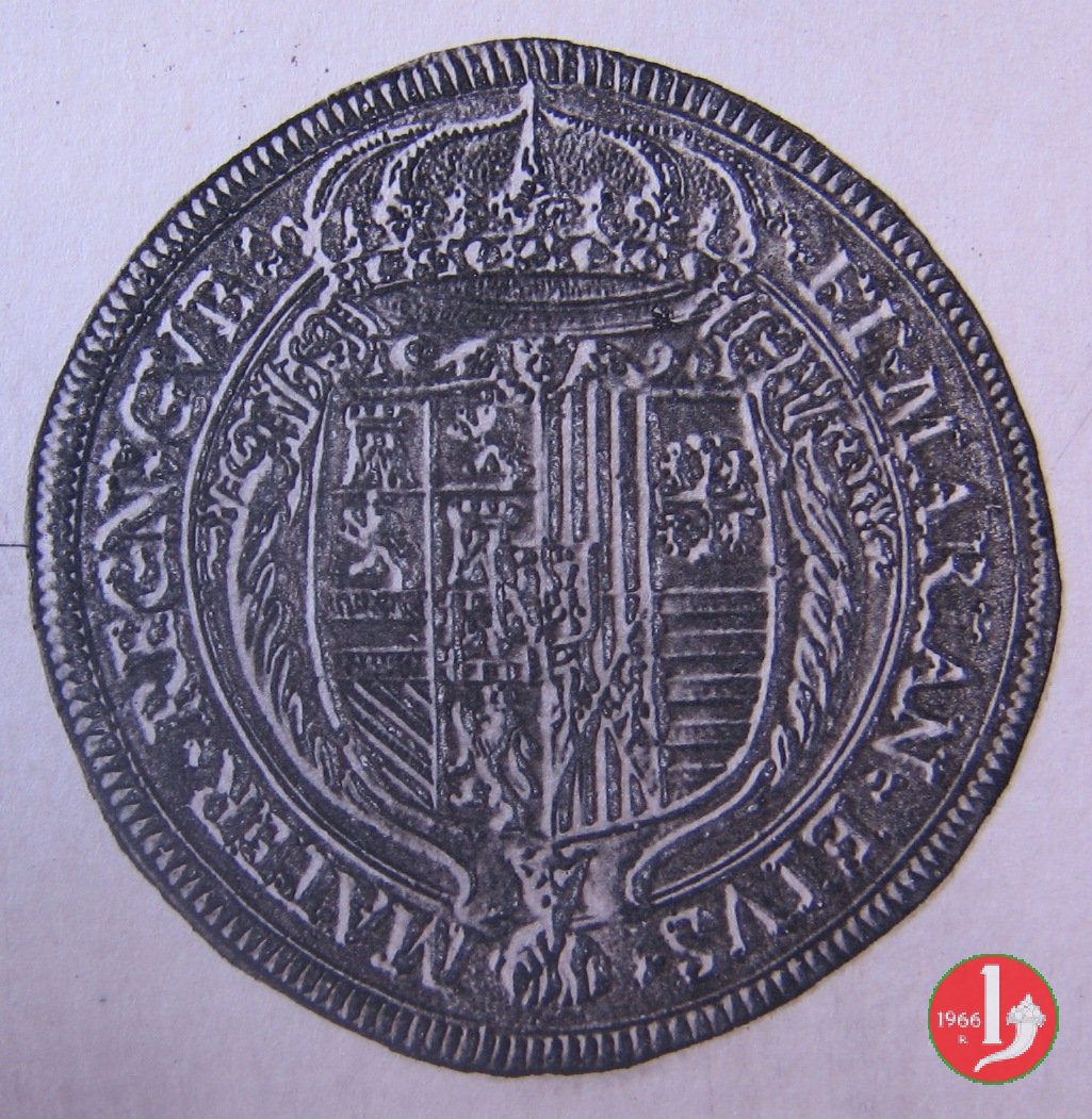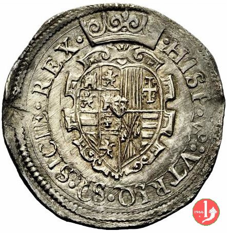 Tarì Dritto: CAR VI D G ROM IMPE, Busto laureato dell'imperatore a dx, nel taglio del braccio IM. Verso: HISP VTRI SICI REX, Stemma coronato in cartocci con parte del collare del Toson d'oro , a sx della corona sigle zecchieri, sotto la data. | |