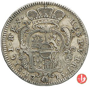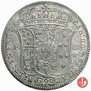 Tarí con Tosone Dritto: •CAR • II • DG • REX • •HISP • ET • NEAP • Busto coronato del re a dx, sotto •IM. • Verso: Data divisa in due dal nastro che sorregge il tosone. Tosone volto a sx, a sx AG/A, a dx punto, sotto G • XX. | |