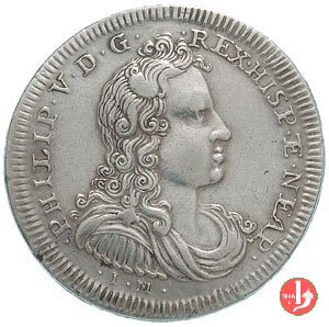 1/2 Ducato 2° tipo Dritto: PHILIPPVS • IIII • DEI • GRA •, Busto del Re radiato con corazza volto a dx, in cerchio di perline, dietro e davanti il busto sigle. La data sotto il busto. Verso: Anepigrafo, stemma partito e coronato, in ornati. | |