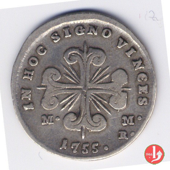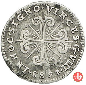 Carlino Dritto: CAR D G UTR SIC REX, Busto del Re a dx, sotto DeG. Verso: IN HO SIGNO VINCES, croce fiorata cantonata da raggi, in basso la sigla M-M/R, sotto la data. | |