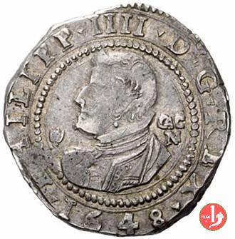Tarì 2° tipo Dritto: PHILIPP IIII D G REX HI, Busto giovanile del re a testa nuda volto a sx, dietro MC. Verso: VTRIVSQUE SICILIAE, Stemma inquartato coronato. | |