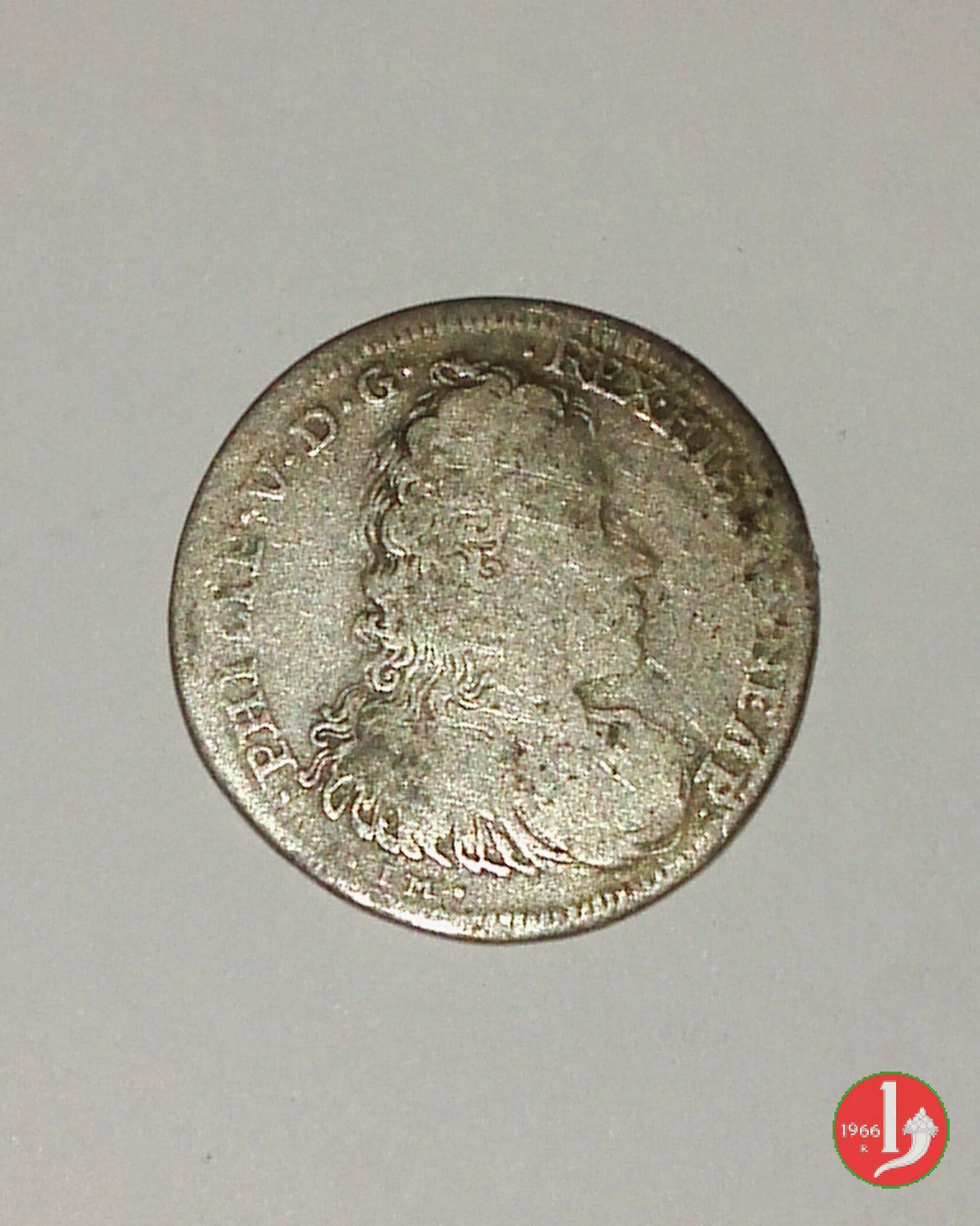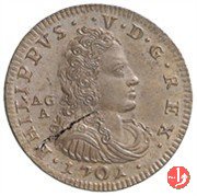 Tornese Dritto: PHILIPPVS V D G REX , Busto del Re a dx, sotto la data. Verso: Tosone sospeso a sx in cartella ornata, sotto AG/A. | |