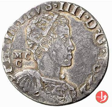 3 Carlini con corona Dritto: PHILIPP. IIII. DEI. GRA, Busto del Re radiato volto a dx, dietro sigla dell'Ufficiale di zecca, davanti, eventualmente, sigla del coniatore, sotto la data. Verso: Anepigrafo, grande corona in ghirlanda dalloro. | |