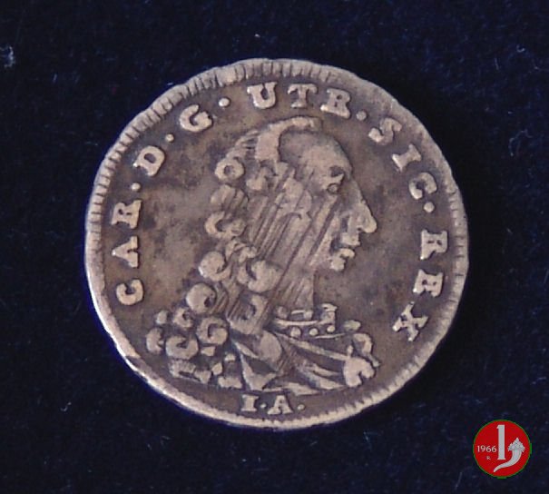 1/2 Carlino Dritto: CAR D G UTR SIC REX, Busto del re a dx, sotto sigla I.A. Verso: Figura allegorica dell'Abbondanza volta a dx che sparge monete. Ai lati sigla, in esergo la data. | |