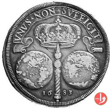 Ducato con Emisferi Dritto: •CAROLVS • II • D • G • HISPANIAR • ET • NEAP • REX • Busto volto a dx, sotto I.M.. Verso: • VNVS • NON • SVFFICIT in nastro. Scettro su cui corona, fra due emisferi, nel campo, a sx, AG/A, a dx 1684 • Contorno dentellato. | |