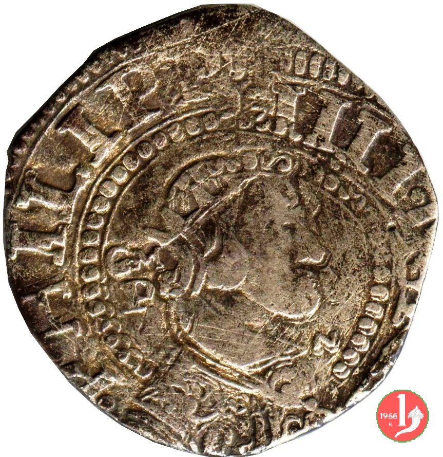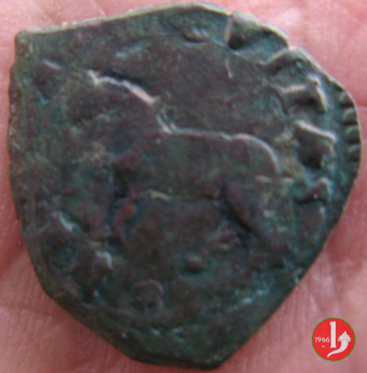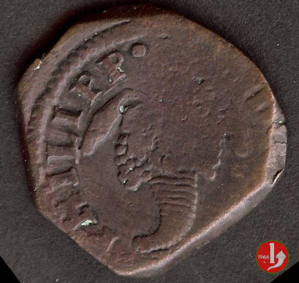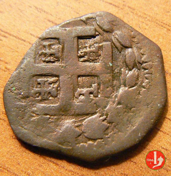 Grano con stemma a lati dritti, curvi ed ornati Dritto: •PHILIPPVS. IIII • D • G, Busto radiato del re volto a sx, dietro sigla, sotto il busto la data. Verso: +SICILIAE ET HIERVSALEM, Scudo partito coronato, ai lati la data divisa in due parti. | |