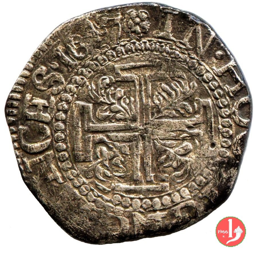 3 cavalli con croce Dritto: PHILIPP. IIII. D.G. e la data, busto radiato volto a dx, dietro MC. Verso: Anepigrafo, croce di Gerusalemme cantonata da croci, in ghirlanda. | |