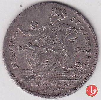 1/2 Piastra con busti accollati Dritto: CAR UTR SIC REX ET MAR AMAL REG, busti accollati a dx. Verso: FIRMATA SECURITAS, donna seduta con bambino sulle ginocchia, ai lati M-M/R, a dx DeG. In esergo, su due righe, PHILIP:NAT: / A:1747. |