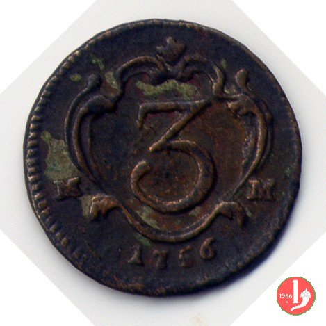 3 Cavalli Dritto: CAR D G VTR SIC REX, Volto del Re a Dx, sotto sigla. Verso: Nel campo il valore 3 in cartella, ai lati sigle M - M, sotto la data. | |