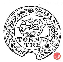 3 Tornesi Dritto: .CAROLVS.II.D.G.REX 83, Busto del Re volto a dx, dietro AG/A, Verso: TORNES/TRE, sormontato da corona, tutto in cerchio di foglie. | |