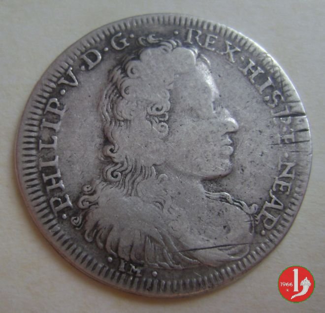 Grano Dritto: PHILIPPVS V D G REX , Busto del Re a dx, dietro AG/A, sotto la data. Verso: HIERVSA ET SICILIAE, Stemma coronato. | |