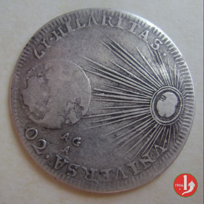 Pubblica Dritto: CAR D G UTR SIC ET HIER REX, busto del Re a Dx, sotto sigla. Verso: PUBLICA / LETI / TIA, in cartella ornata, ai lati la sigla MM, sotto la data. | |