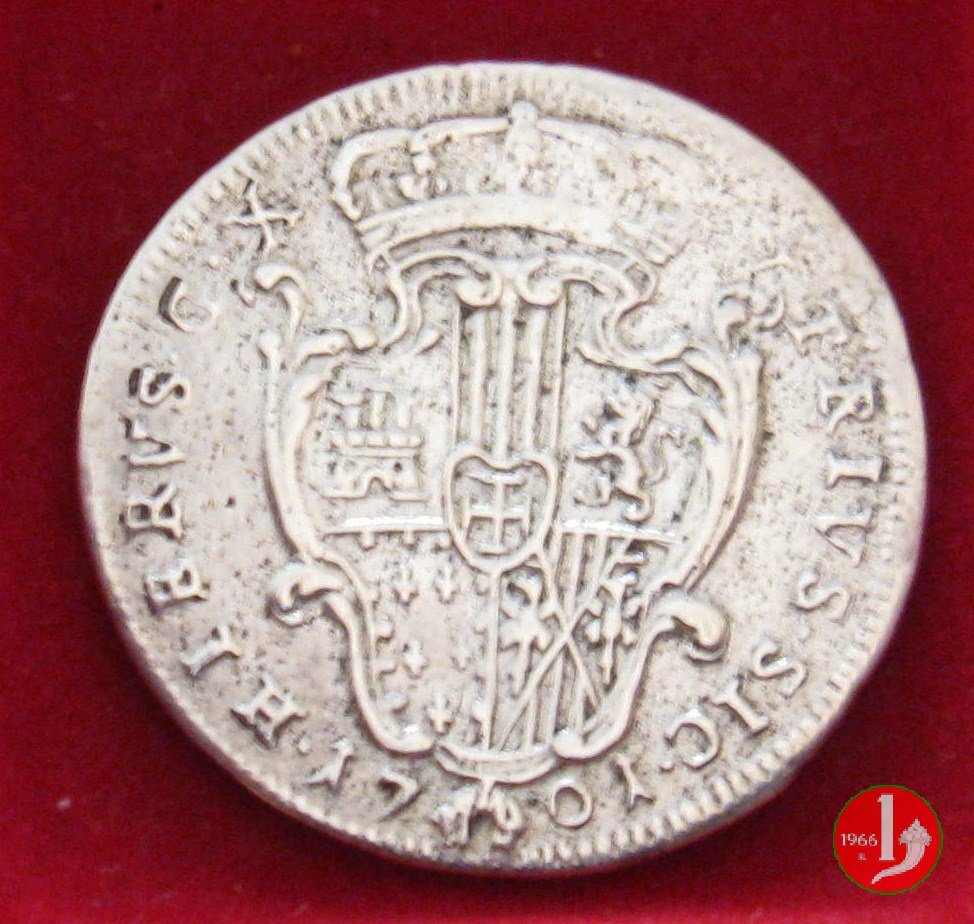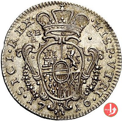 Carlino 2° tipo Dritto: PHILIP V D G REX HISP ET NEAP, Busto del Re a dx, sotto IM AG/A. Verso: VTRIVS SICI HIERVS G X, Stemma coronato, sotto la data. | |