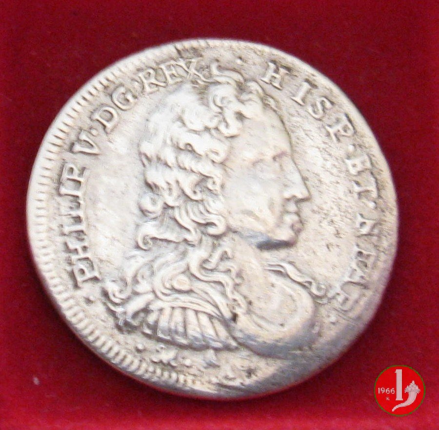 Carlino 1° tipo Dritto: PHILIP V D G REX HISP ET NEAP, Busto del Re a dx, sotto IM. Verso: HILARITAS VNIVERSA, Globo terrestre illuminato dal sole, a dx AG/A, in basso la data. | |